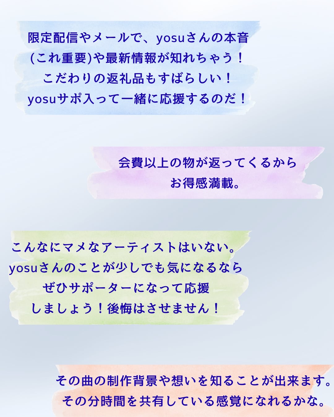年会費でyosuの活動を応援して下さるみなさま方へ、サポーター会員様限定のおもてなしをさせていただいております。